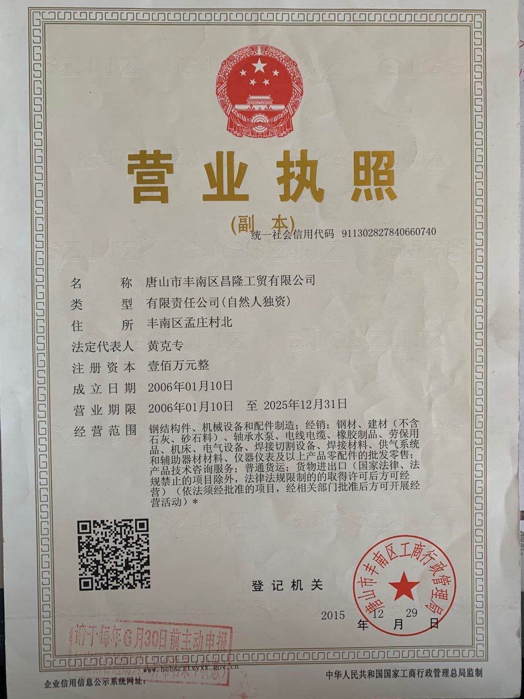 唐山市豐南區(qū)昌隆工貿有限公司